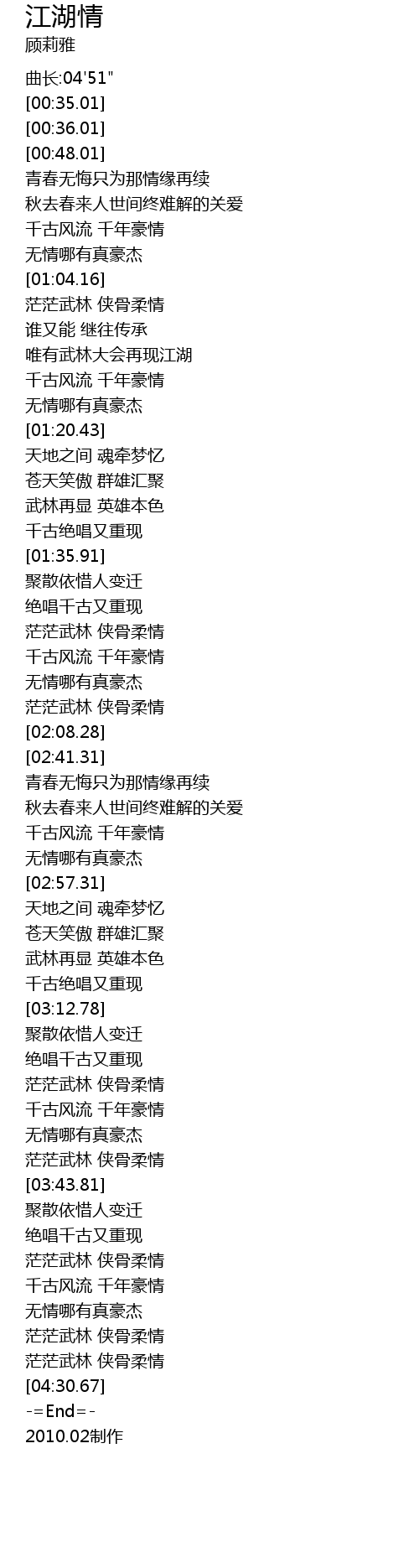 | [04:07.34] | 茫茫武林 侠骨柔情 |