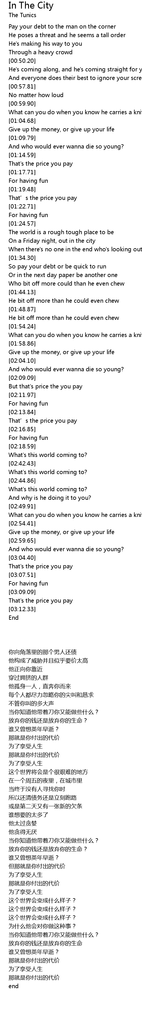 | [03:11.09] | That' s the price you pay |