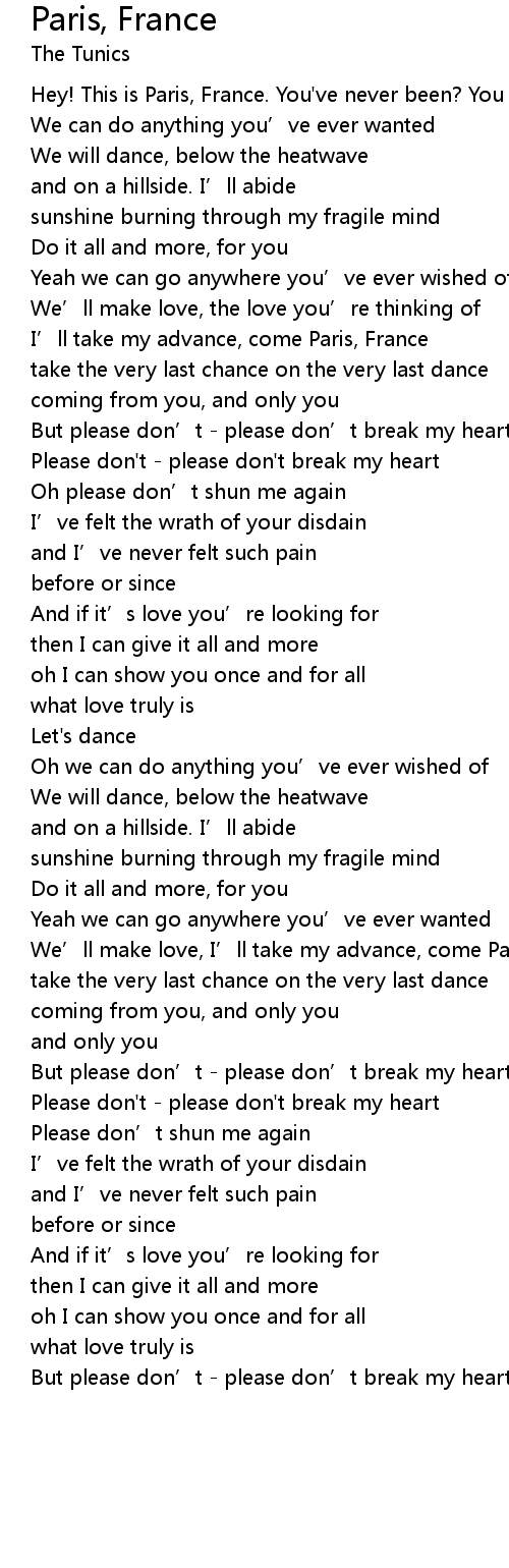 | But please don' t please don' t break my heart | |