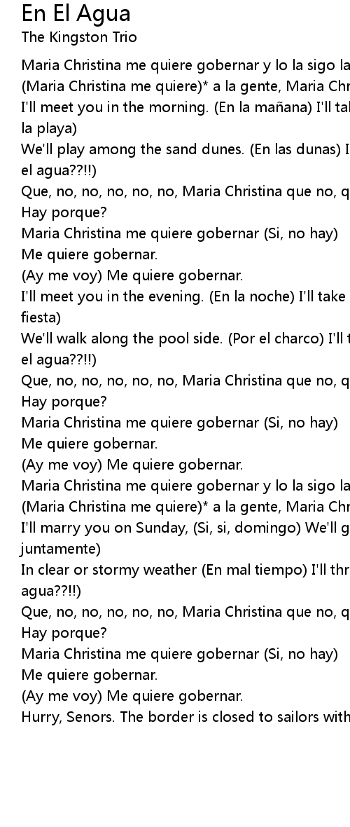 | Maria Christina me quiere gobernar y lo la sigo la sigo la corriente, | |