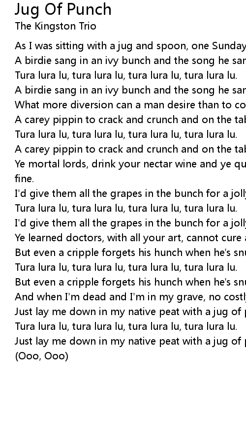 A birdie sang in an ivy bunch and the song he sang was the jug of punch. |