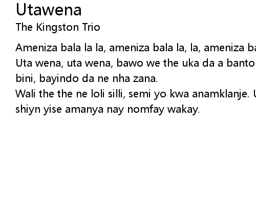 | Uta wena, uta wena, bawo we the uka da a banto kwakho. Waba dala, waba dala baba bini, bayindo da ne nha zana. | |