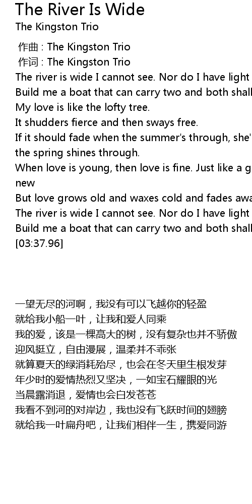 | [00:34.62] | The river is wide I cannot see. Nor do I have light wings to fly. |