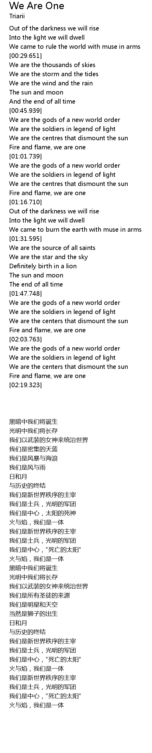 We Are One Lyrics
