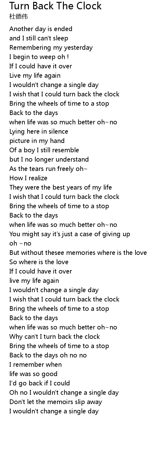 Why can't I turn back the clock |