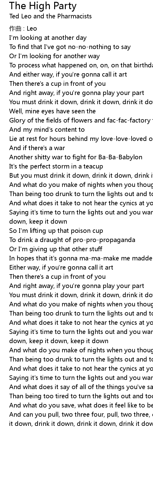 | But you must drink it down, drink it down, drink it down, drink it down | |