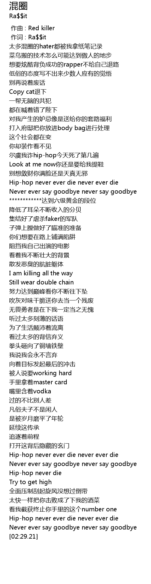 | [00:10.92] | 太多混圈的hater都被我拿纸笔记录 |