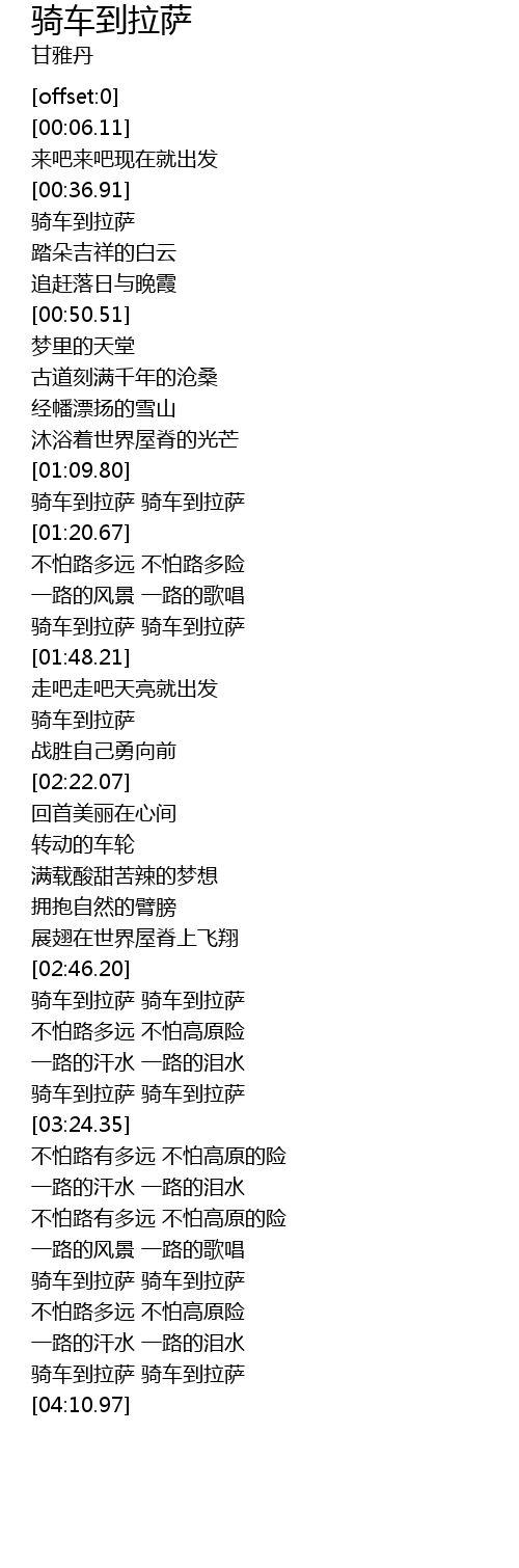 | [04:00.82] | 骑车到拉萨 骑车到拉萨 |