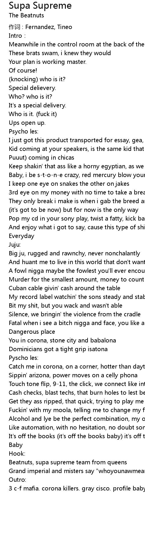 | Song | Supa Supreme |