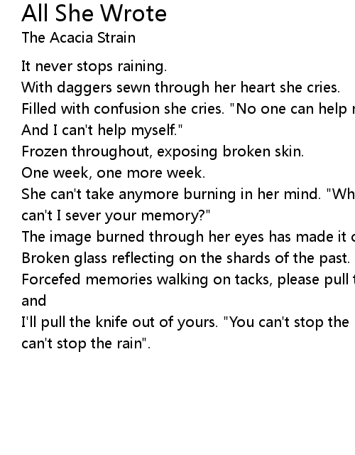 I'll pull the knife out of yours. "You can't stop the rain", she says. "You can't stop the rain". |