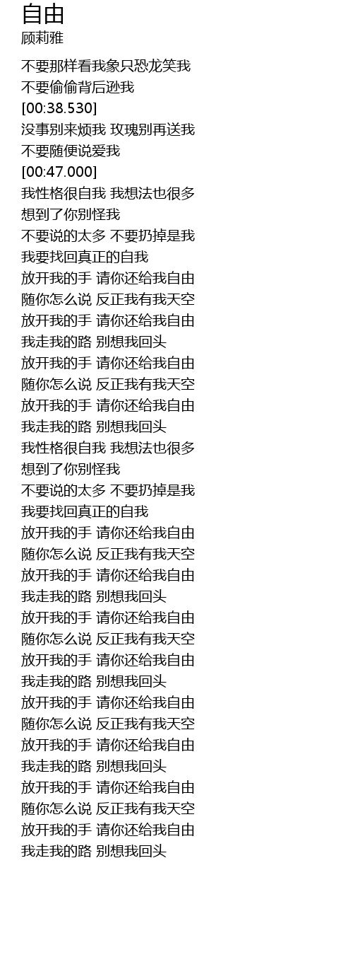 | [03:56.370] | 放开我的手 请你还给我自由 |