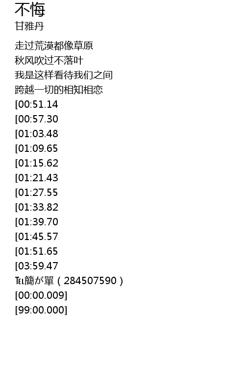 | [03:41.15][01:39.70] | 简单的是天涯都追随 |