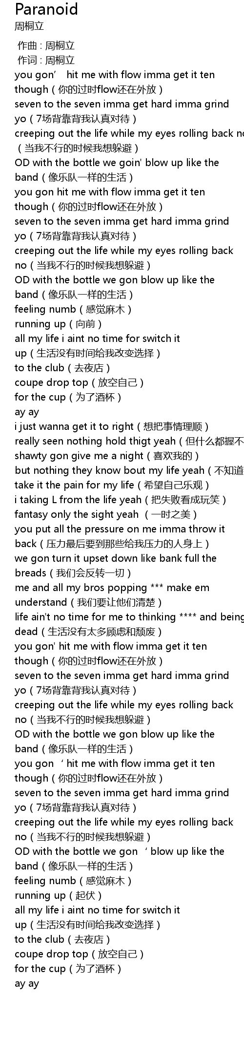 [01:35.939] you gon' hit me with flow imma get it ten though nǐ de guò shí flow hái zài wài fàng