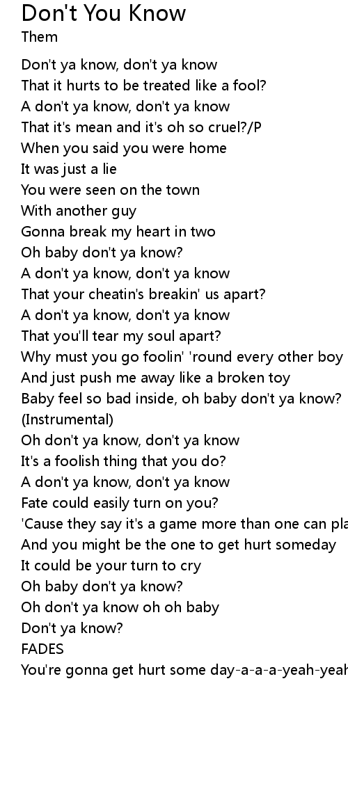 Don't ya know, don't ya know |