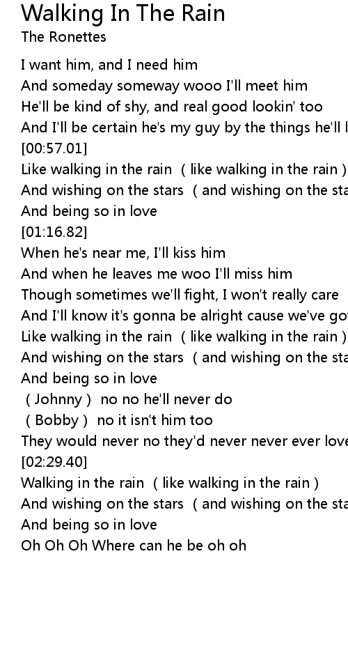 | [01:00.19] | Like walking in the rain like walking in the rain |