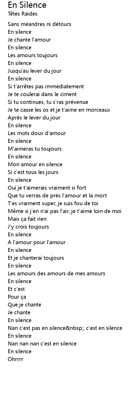 | Nan c' est pas en silence nbsp c' est en silence | |