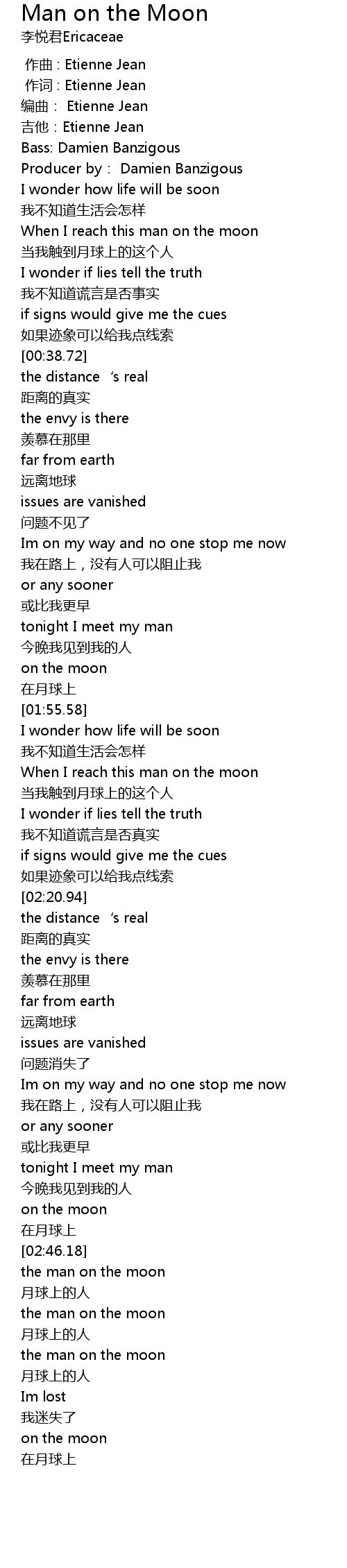 | [00:24.93] | dāng wǒ chù dào yuè qiú shàng de zhè gè rén |