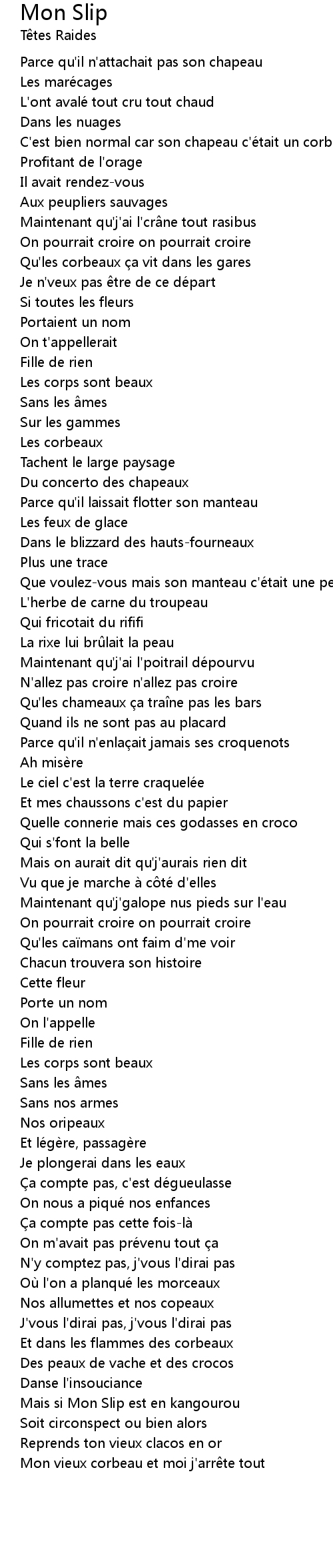 | Song | Mon Slip |