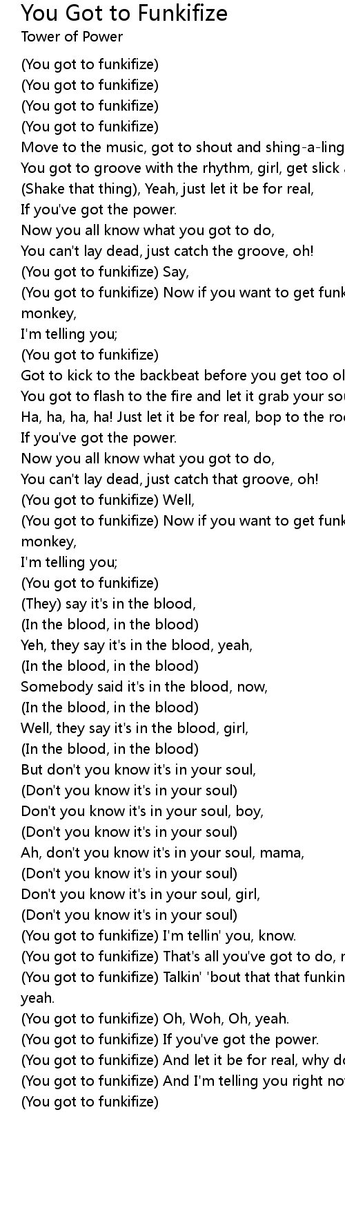 (You got to funkifize) Talkin' 'bout that that funkiness, yeah, yeah, |