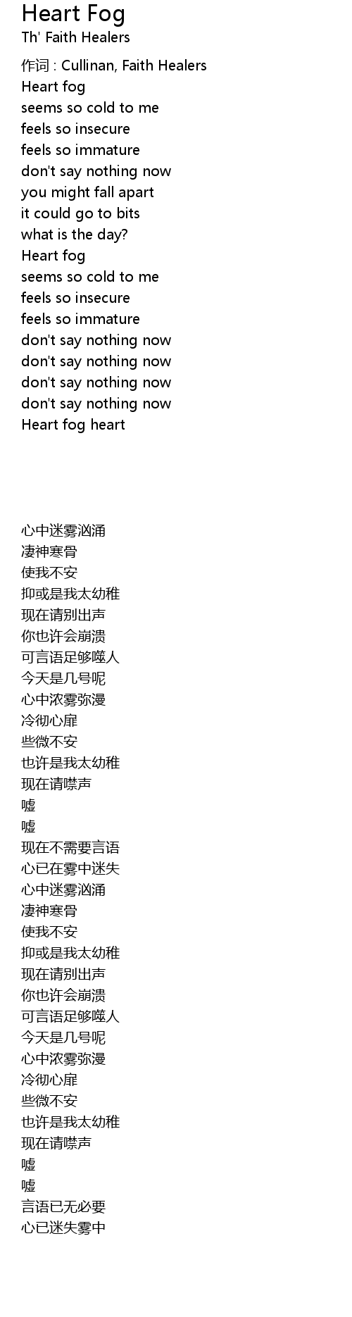 | 作词 : Cullinan, Faith Healers | |