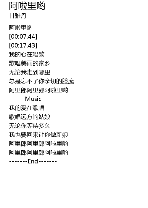 | [01:12.71] | a li lang a li lang a la li yo |