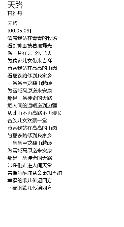 | [00:00.00] | 天路 |