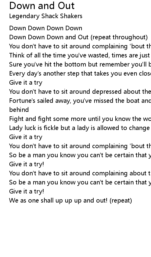 Down Down Down and Out (repeat throughout) |