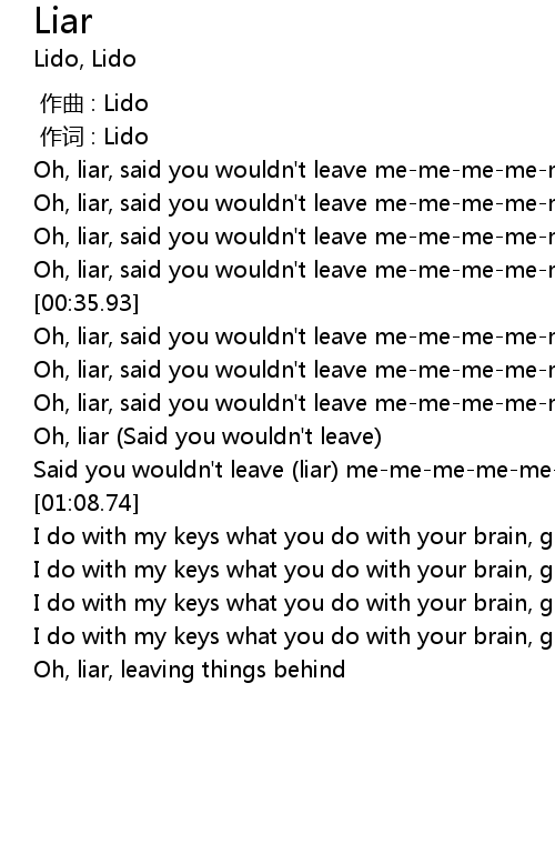 | [00:01.29] | Oh, liar, said you wouldn't leave me-me-me-me-me-me-me |
