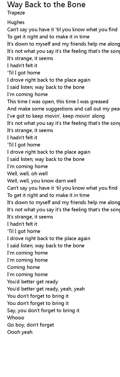 I said listen; way back to the bone |