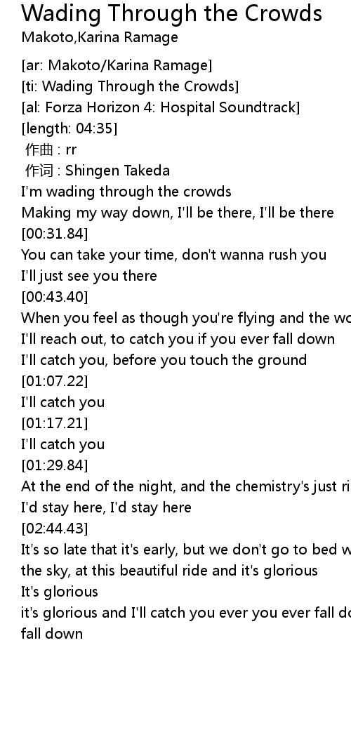 | [03:17.43] | it's glorious and I'll catch you ever you ever fall down, fall down, fall down |
