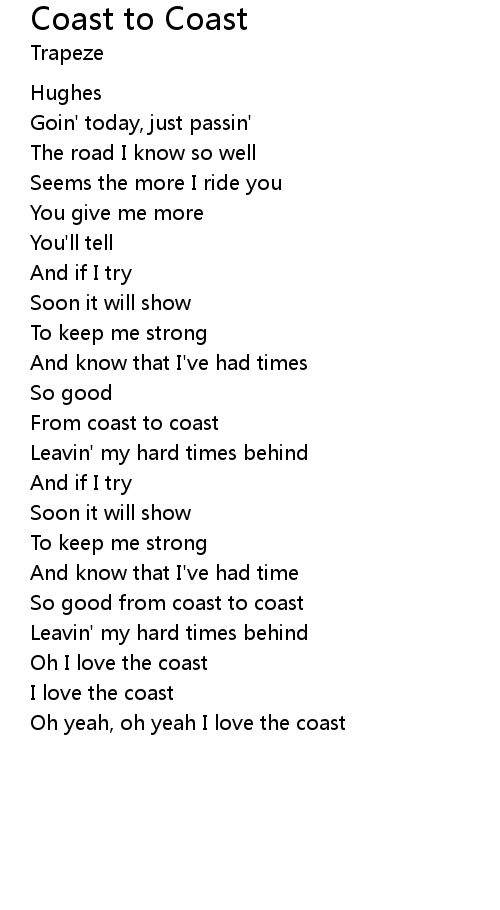| Oh yeah, oh yeah I love the coast |