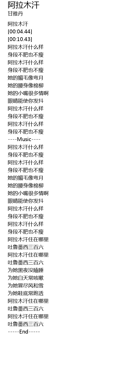 | [00:43.07] | 阿拉木汗什么样 |