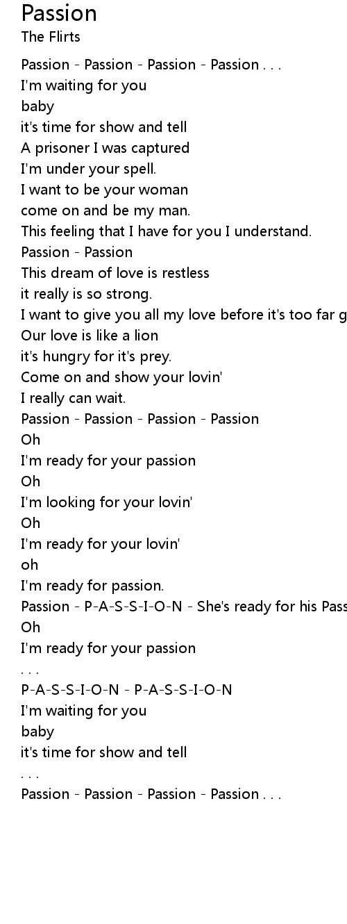 Passion - P-A-S-S-I-O-N - She's ready for his Passion. |