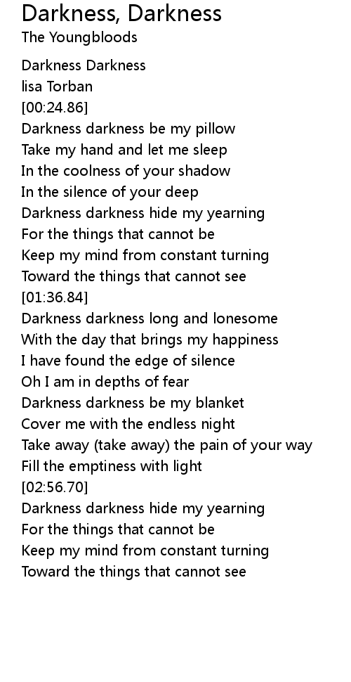 Darkness darkness hide my yearning |