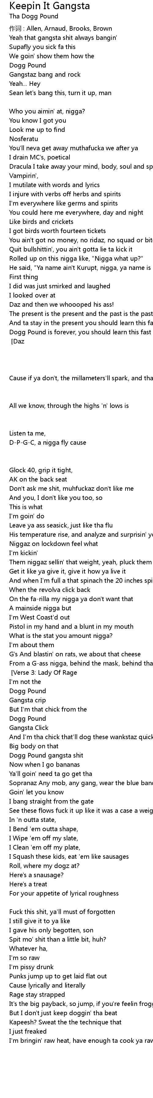 | Dogg Pound gangsta shit | |