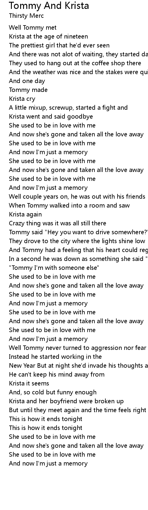 In a second he was down as something she said "Tommy I'm with someone else" "Tommy I'm with someone else" |