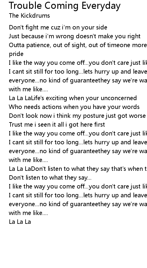 I cant sit still for too long...lets hurry up and leavethis life is not for everyone...no kind of guaranteethey say we're wasting our lives but you can sing with me like.... |