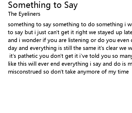 something to say something to do something i want to say to you something i want to say but i just can't get it right we stayed up late last night just talking and i wonder if you are listening or do you even care when night has turned to day and everything is still the same it's clear we won't get anywhere from here [Chorus] it's pathetic you don't get it i've told you so many times i don't feel like this will ever end everything i say and do is misunderstood and misconstrued so don't take anymore of my time |