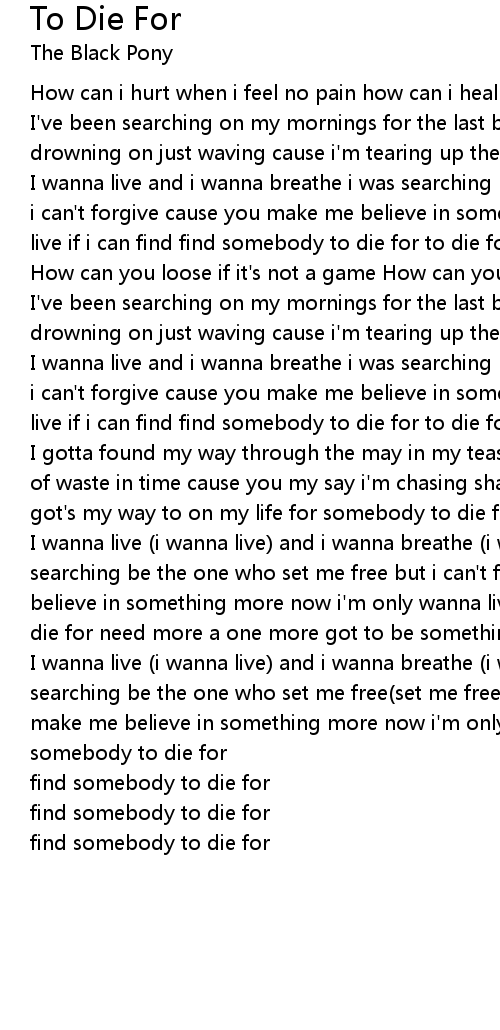 I wanna live and i wanna breathe i was searching be the one who set me free but i can't forgive cause you make me believe in something more now i'm only wanna live if i can find find somebody to die for to die for |