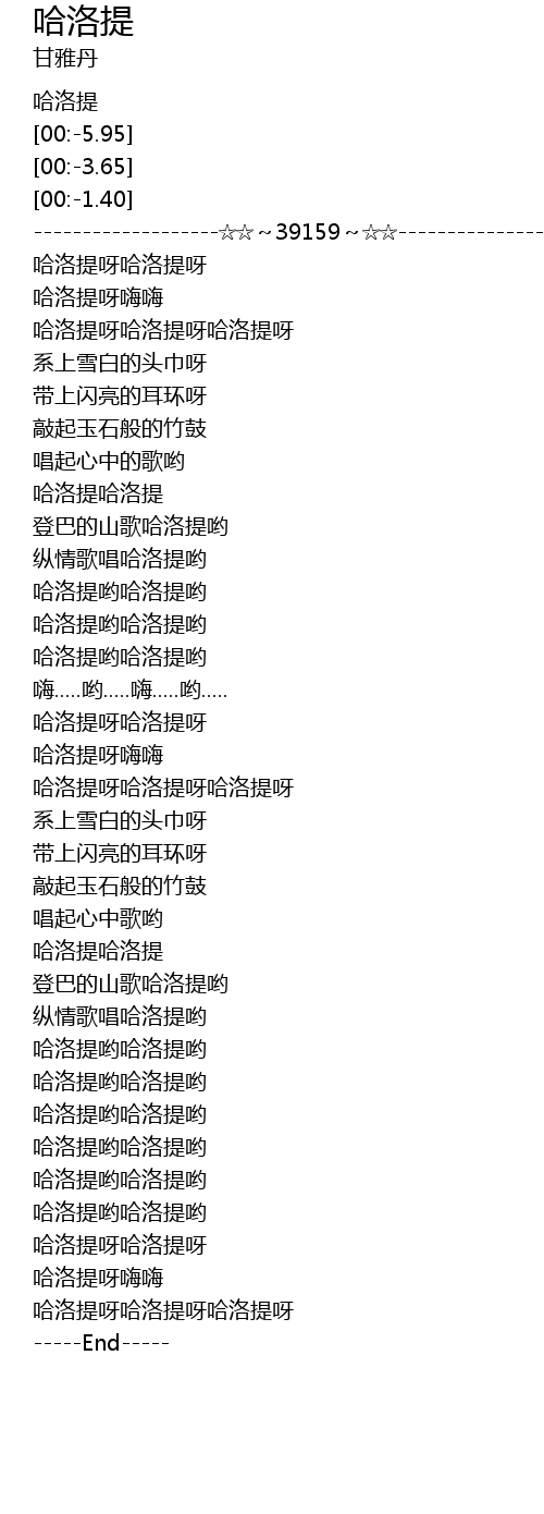 | [00:39.92] | 纵情歌唱哈洛提哟 |