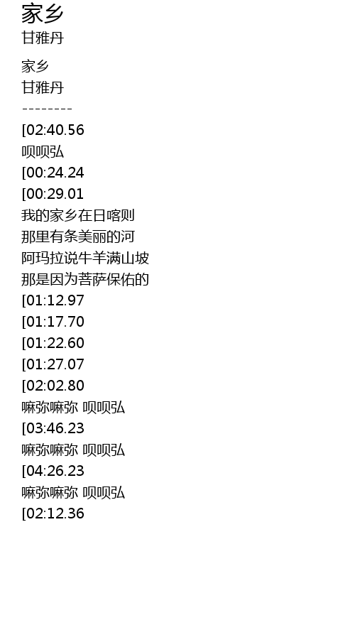 | [00:00.00] | 家乡 |