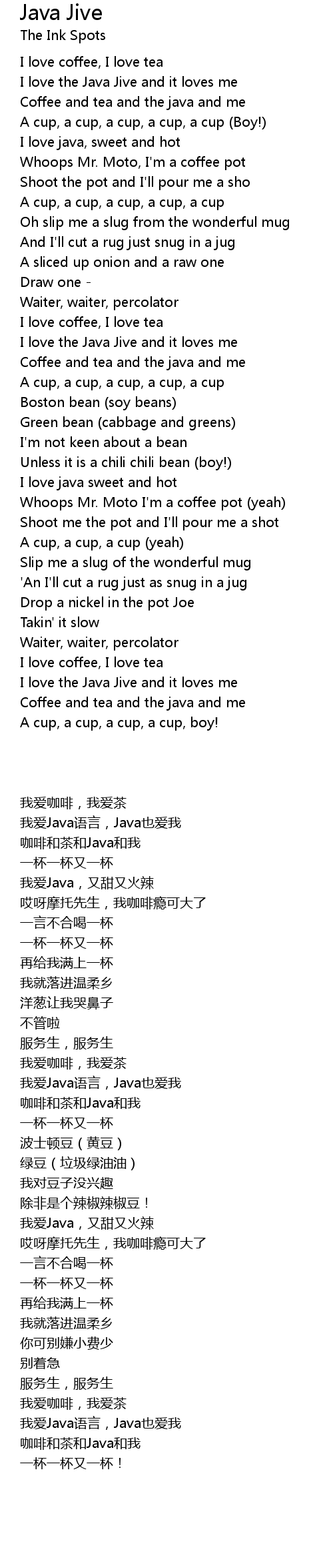 Coffee and tea and the java and me |