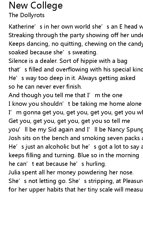 | you’ll be my Sid again and I’ll be Nancy Spungen | |