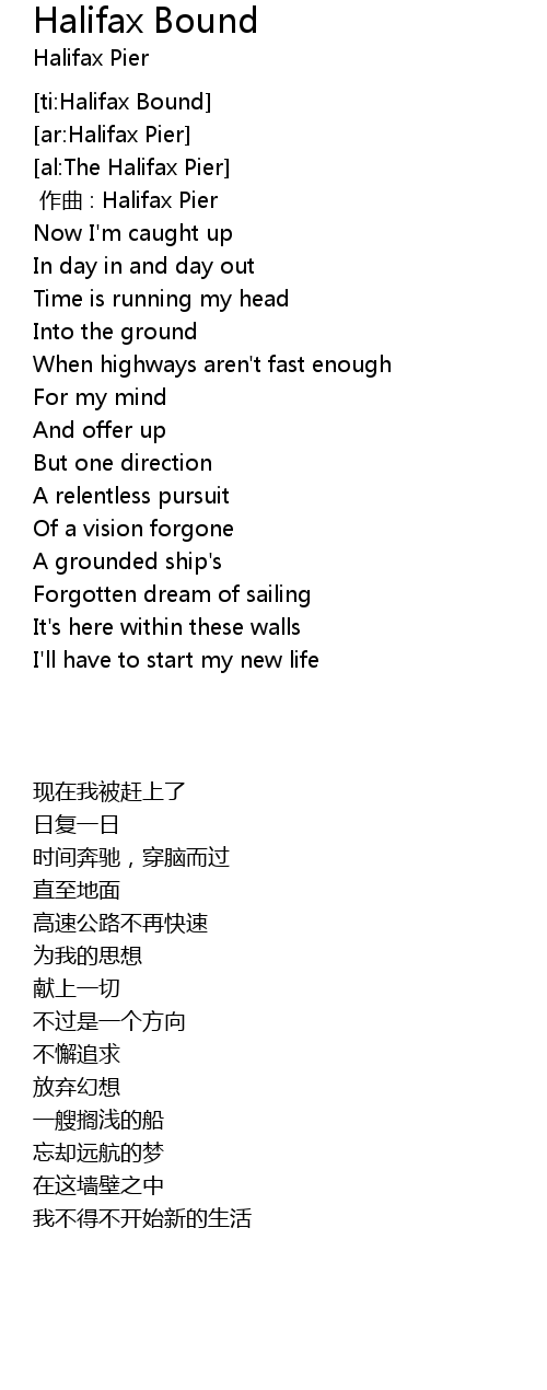 | [00:00.00] | zuò qǔ : Halifax Pier |
