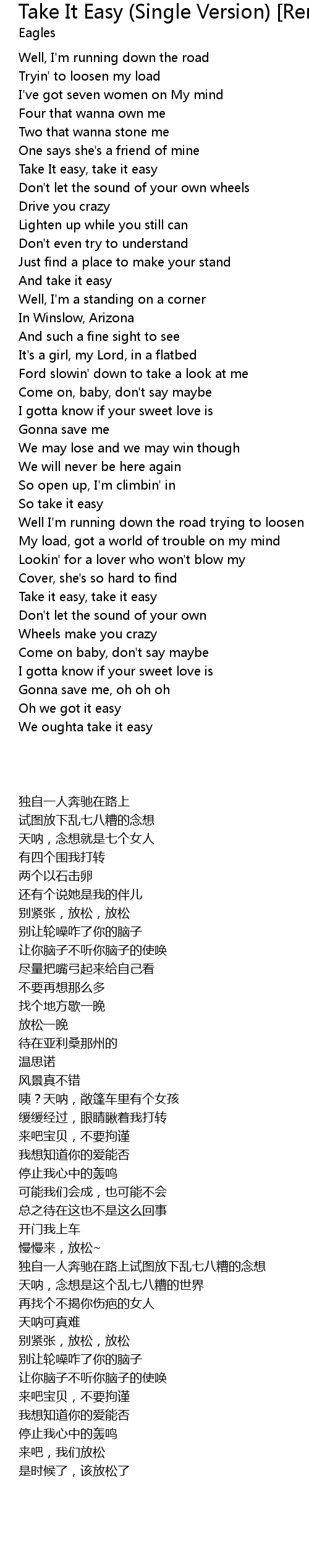 Take It easy, take it easy |