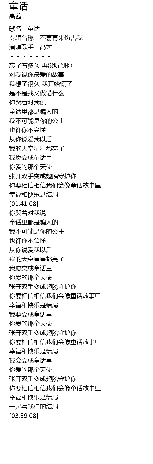 | [03:29.99] | 你要相信相信我们会像童话故事里 |