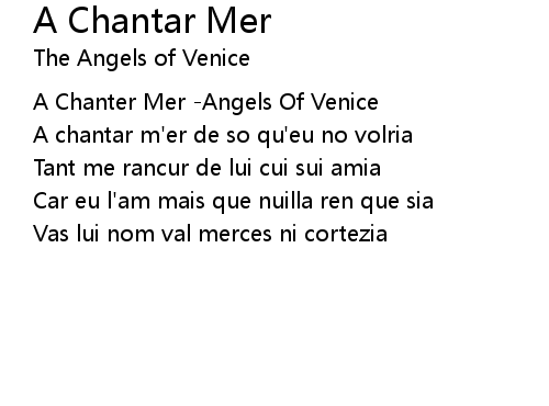 | [00:00.128] | A Chanter Mer -Angels Of Venice |