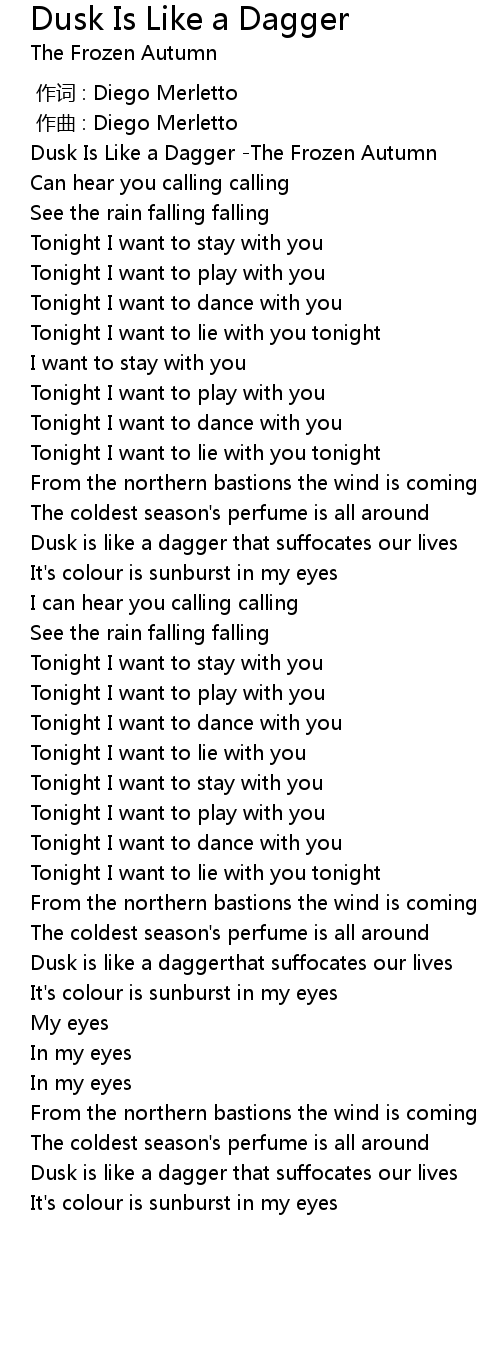 | [00:00.381] | Dusk Is Like a Dagger The Frozen Autumn |