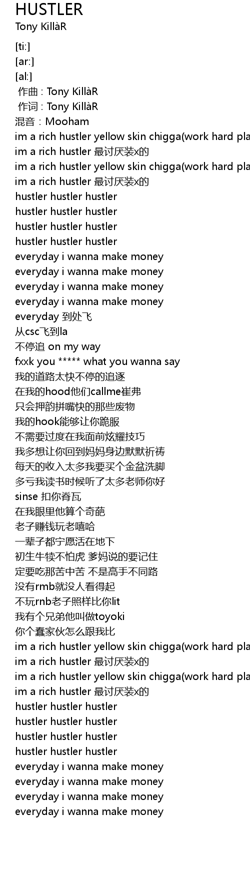 | [00:38.62] | hustler hustler hustler |