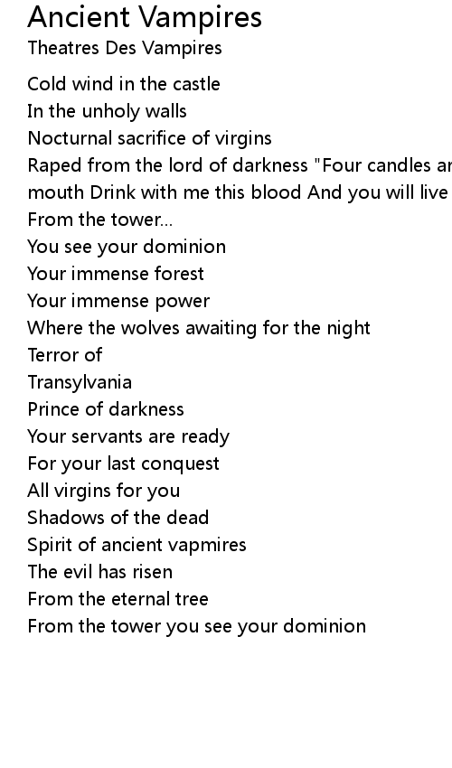 Raped from the lord of darkness "Four candles around your bier Hot blood on your mouth Drink with me this blood And you will live forever" |